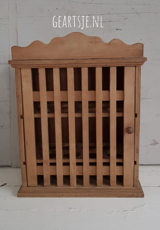 EIERKASTJE - latjes -Bijzonder eierkastje met een deurtje gemaakt van speelse latjes.
